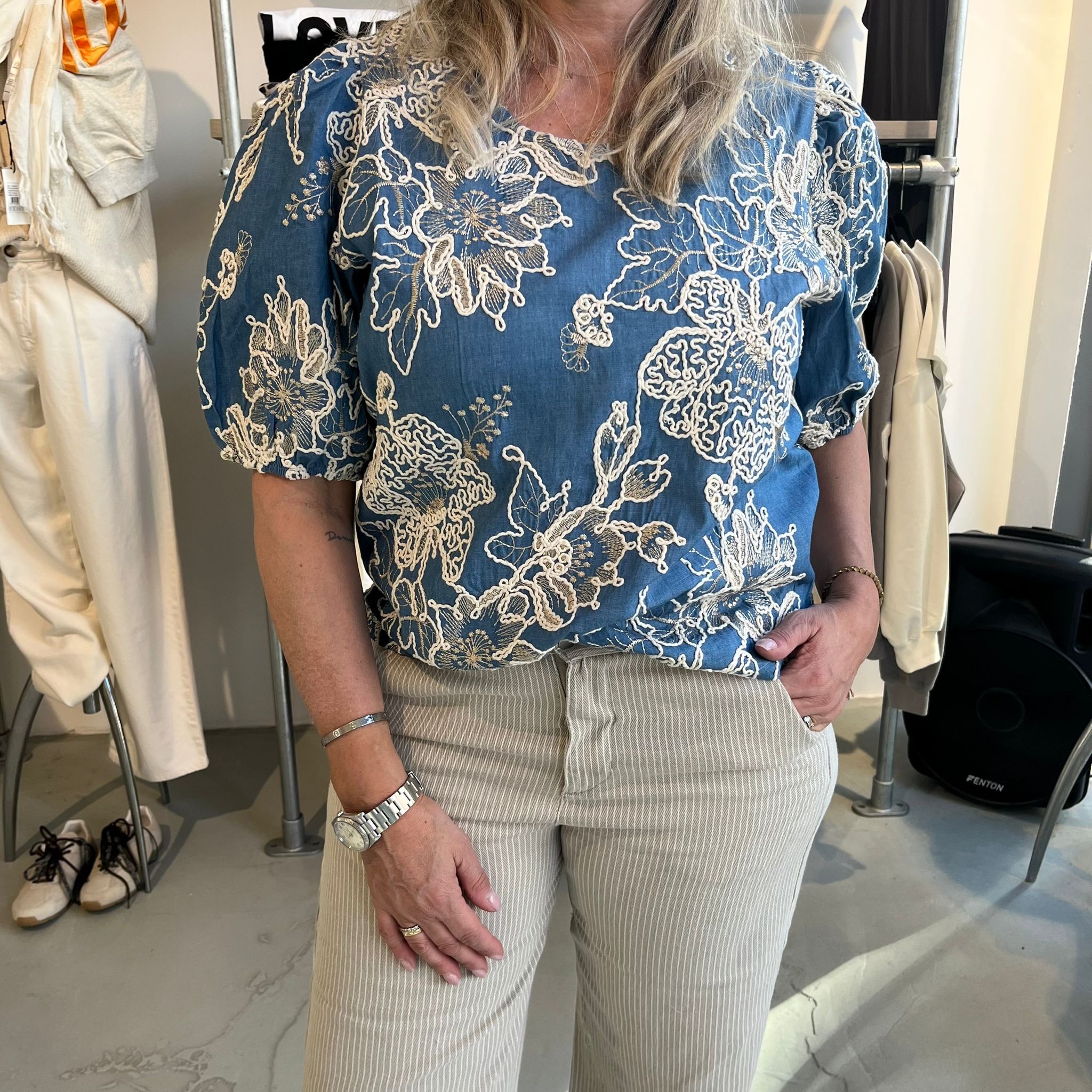 Het design is clean en verfijnd: de V‑hals met brede boord geeft de top een stijlvolle, moderne look, terwijl de korte, wijdere mouwen zorgen voor een ontspannen maar luxe silhouette. De brede boord aan de onderkant laat de top prachtig vallen en geeft een licht gebloused effect flatterend én tijdloos.