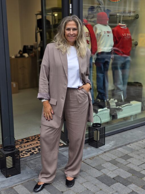 Relaxed fit flowy blazer, gemaakt van zacht washed lyocell twill. Voorzien van een tencelvoering met monogram print, twee knoopsluitingen, een label onderaan de linkermouw, een fake borstzakje, klepzakken aan de voorzijde en een ’10’ monogram borduring op de linker klepzak.