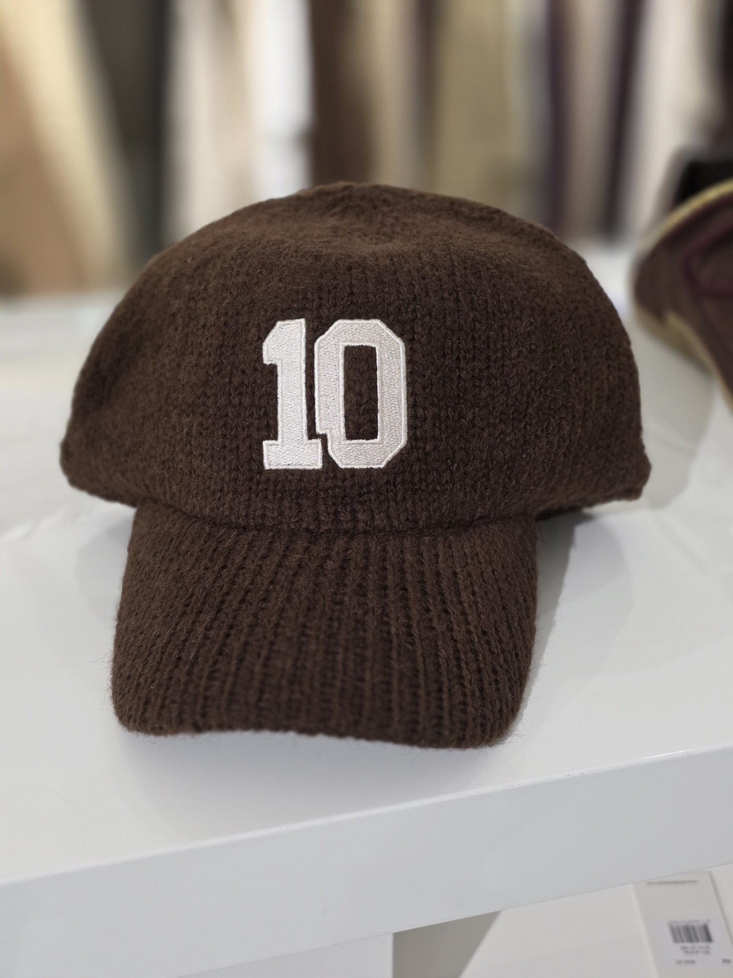 Gebreide baseball pet met ’10’ borduring op de voorzijde.
