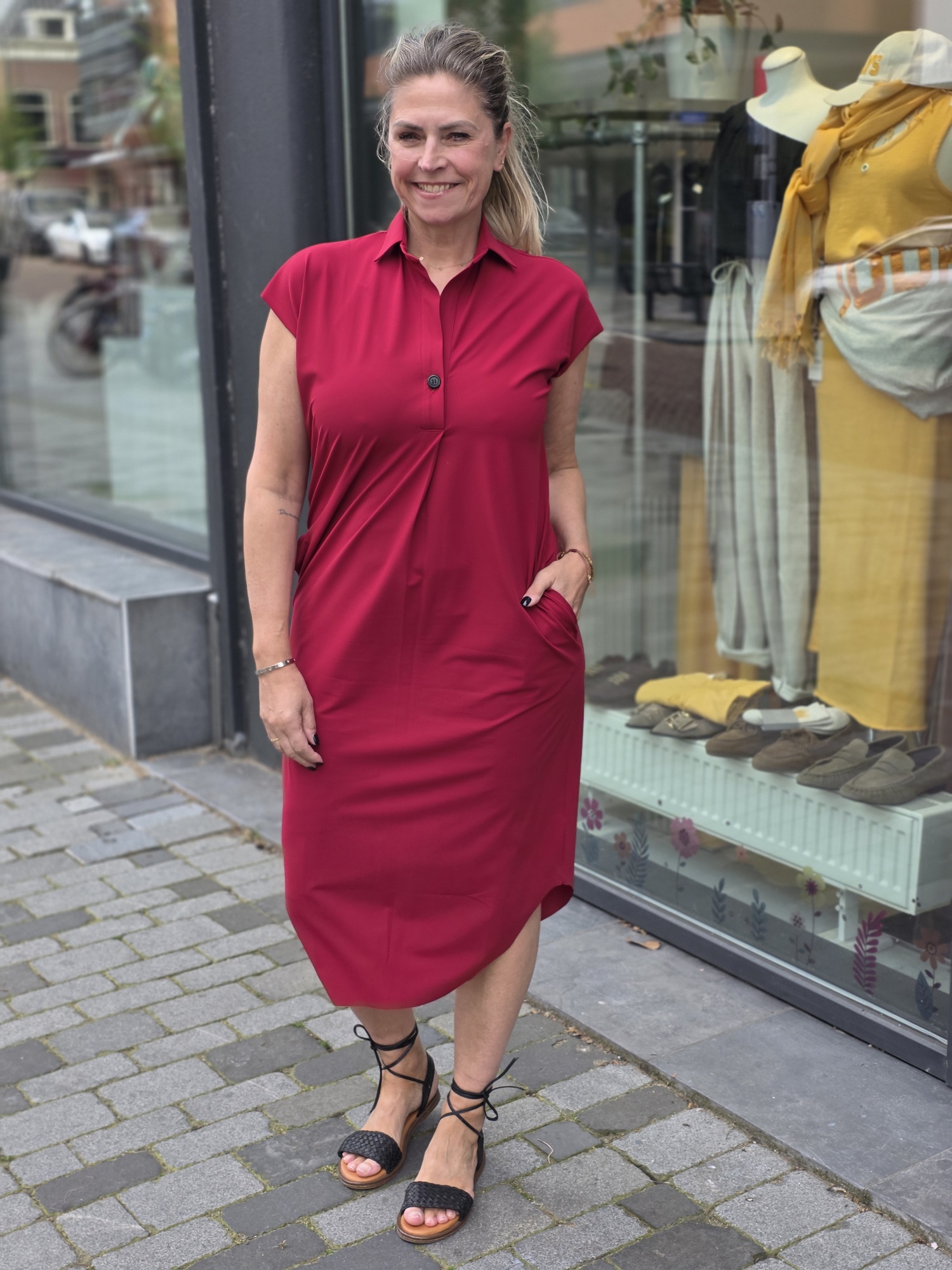 Regular fit midi jurk, gemaakt van zacht katoenen beach fleece. Voorzien van een racerback, raw-edge afwerkingen en een metalen oogje op de borst. Model draagt maat m en is 1.75