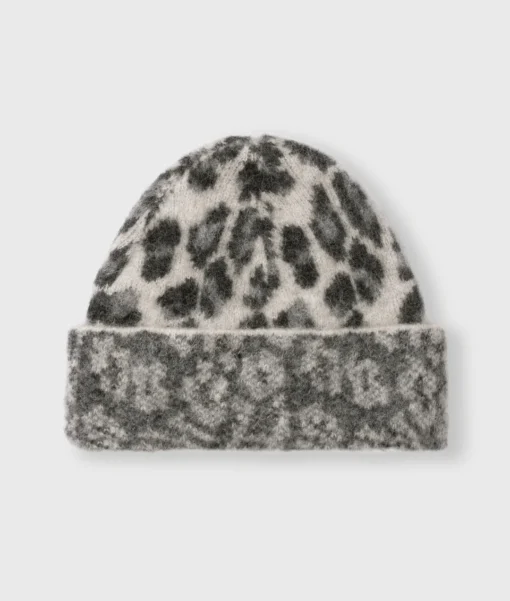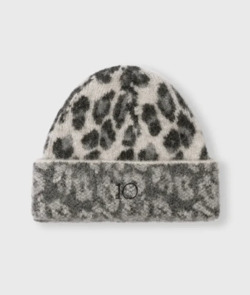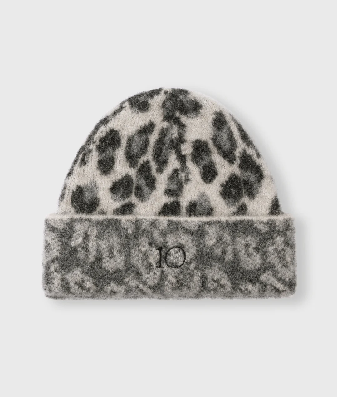 Gebreide leopard muts gemaakt van een zachte wolblend. Voorzien van een ’10’ monogram borduring op de voorkant.