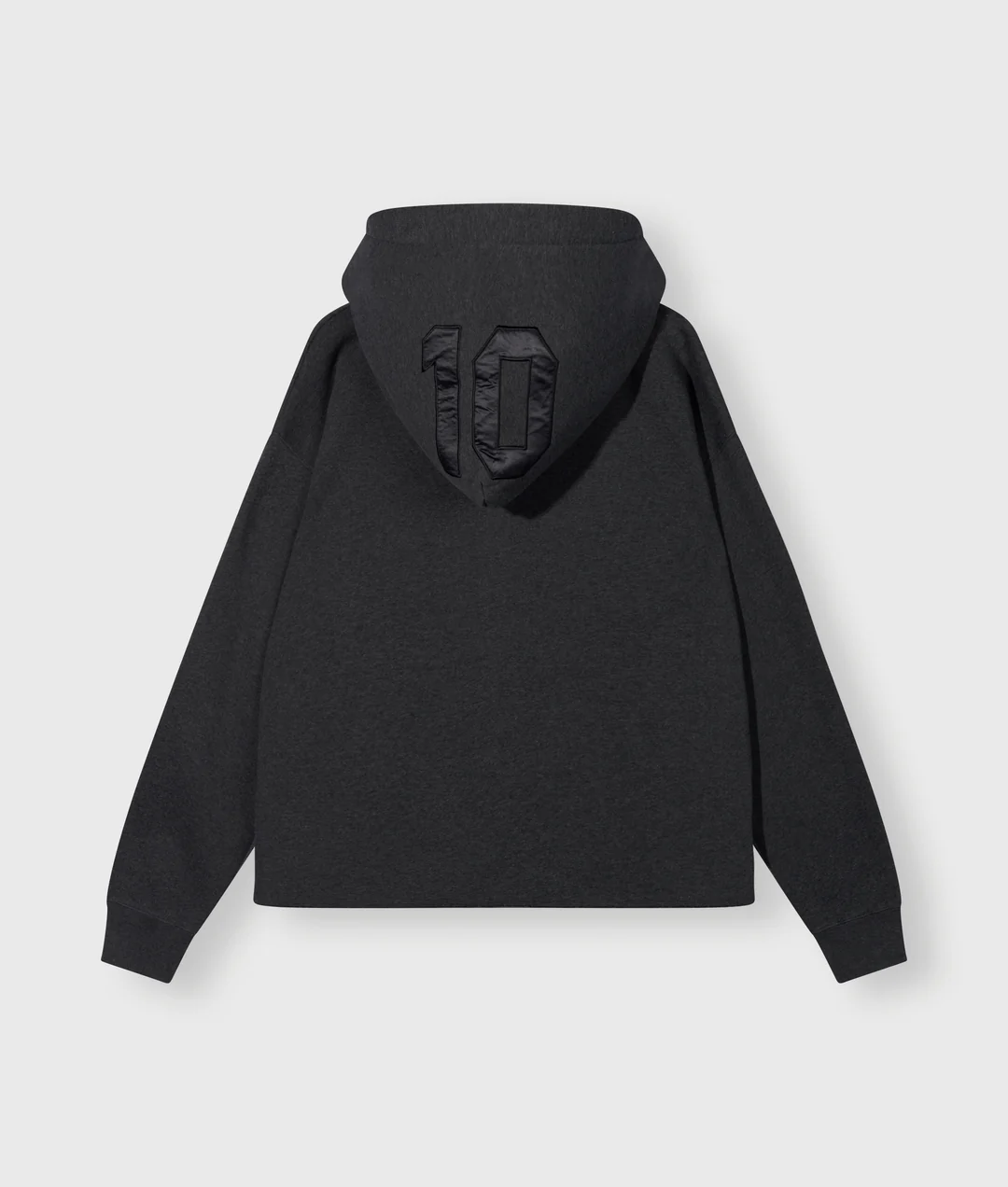 Oversized fit statement hoodie met rits, gemaakt van brushed katoenen fleece. Voorzien van een capuchon met een ’10’ patch, ribgebreide manchetten, een lage schouderinzet en een ritssluiting.