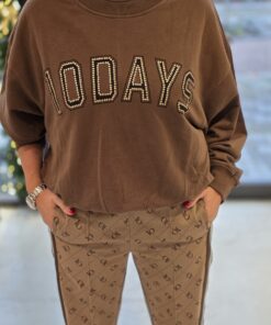 Oversized fit statement sweater, gemaakt van dik geborsteld fleece. Voorzien van een ‘SMILE LOVE 10DAYS’ foilprint op de voorkant, een lage schouderinzet, een ronde hals, ribgebreide boorden en een klein ‘SMILE LOVE 10DAYS’ label op de achterkant.