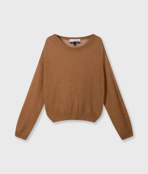 Relaxed fit dun gebreide trui, gemaakt van een fijne alpaca en merino wolblend. Voorzien van een ribgebreide ronde hals, manchetten en zoom en een ’10’ monogram borduring op de rug.