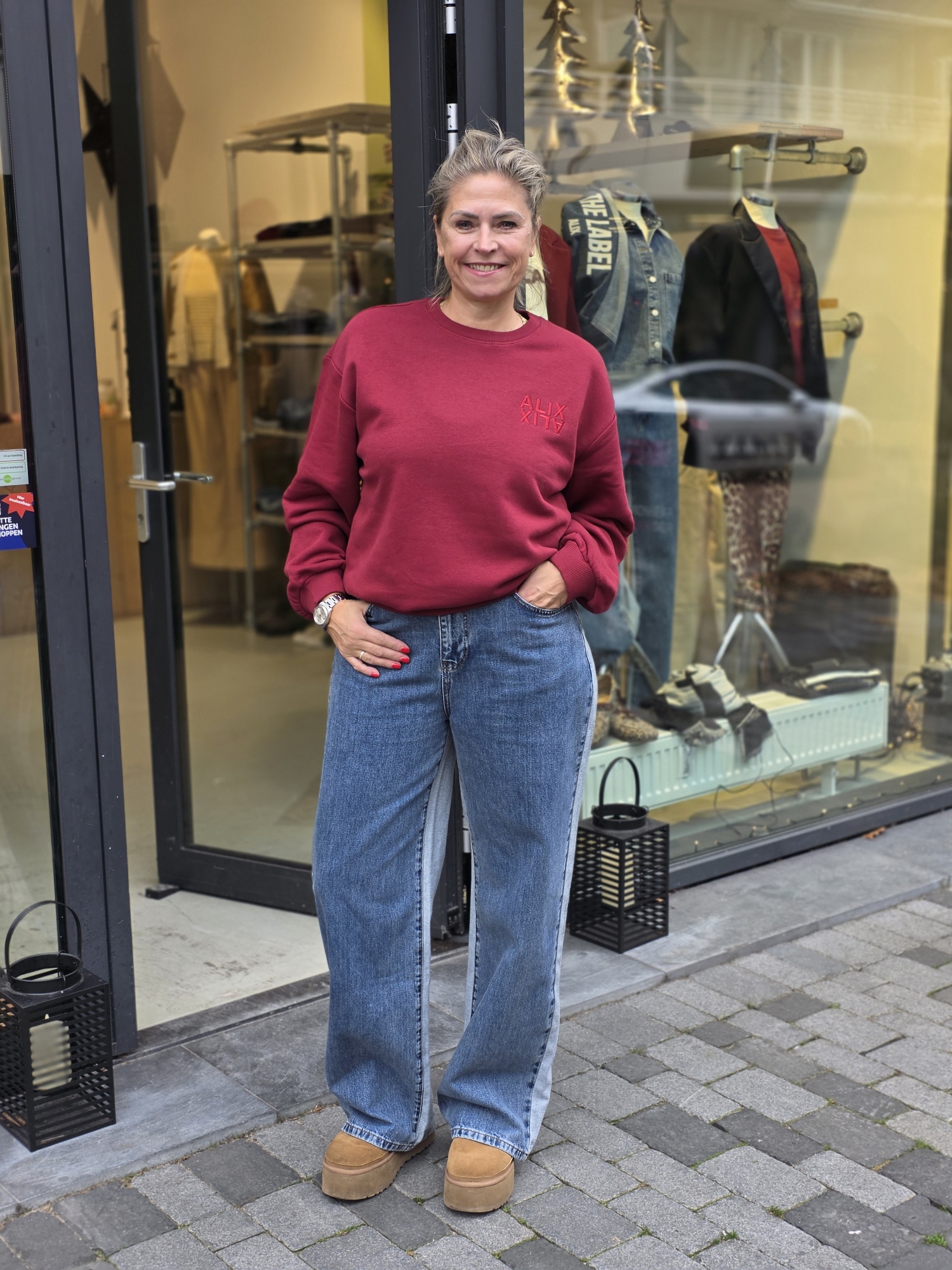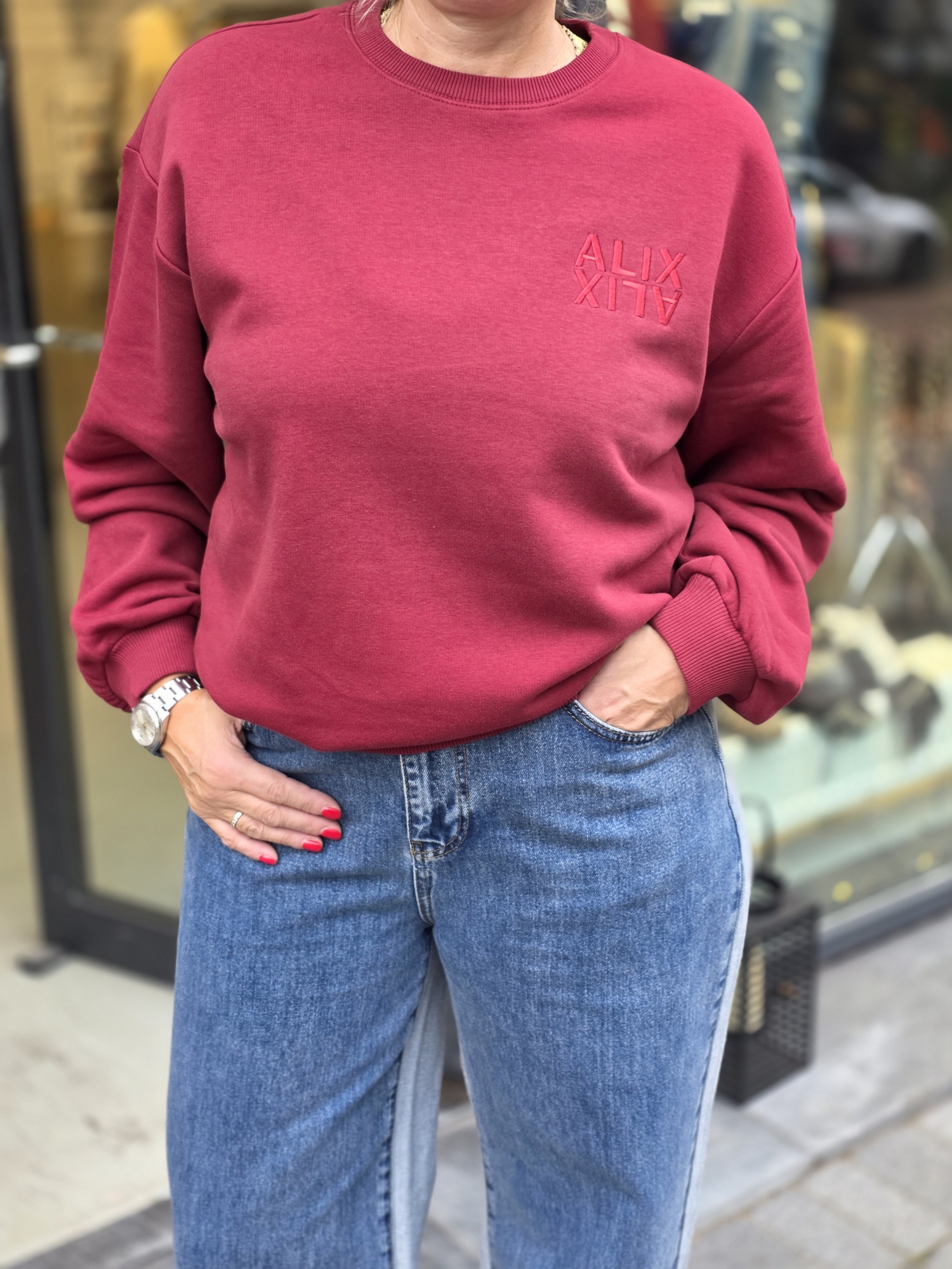 Met een spiegelborduursel ‘ALIX’ op de borst.