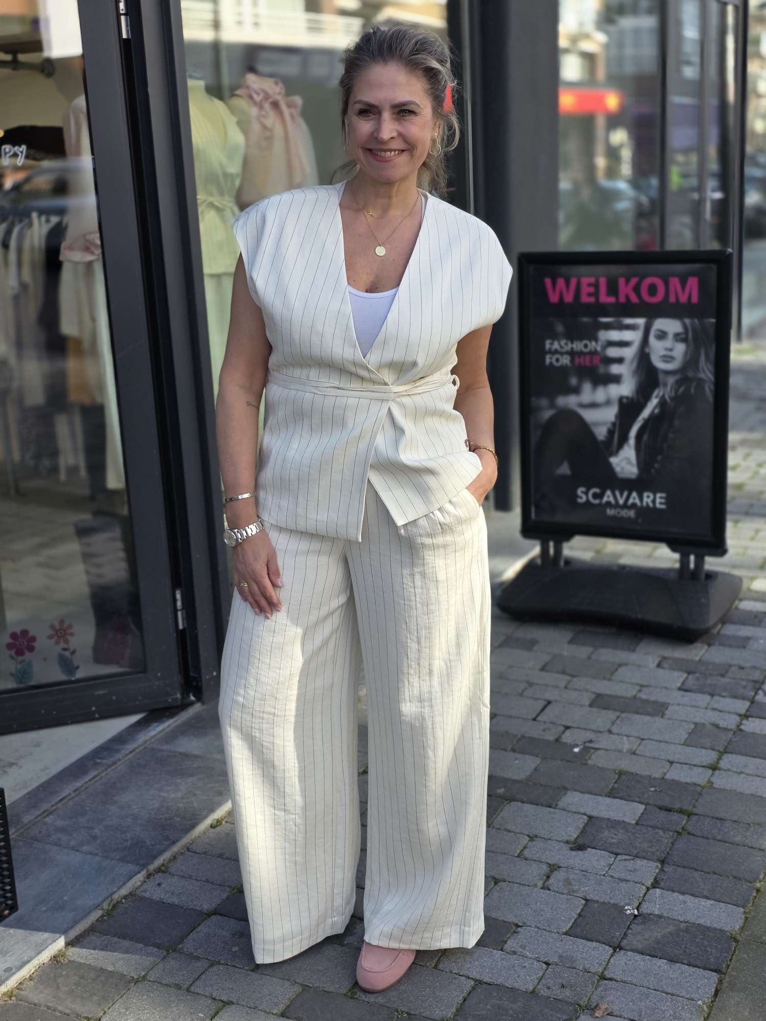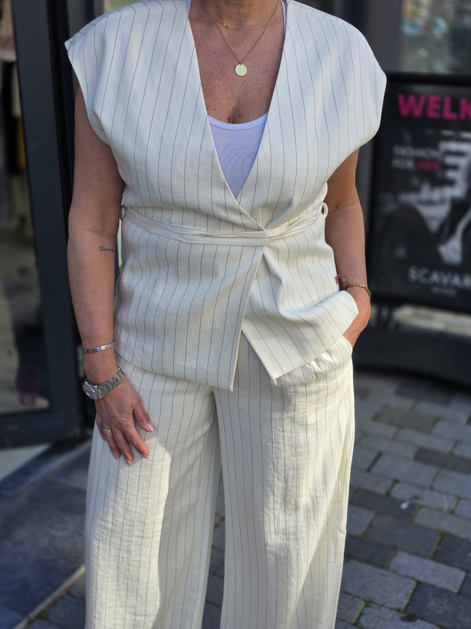 Het East-vest voor dames valt op door zijn iconische breisel, gemaakt van hoogwaardige Italiaanse garens. Het is ontworpen om zachtheid en warmte te bieden en is verkrijgbaar in een breed scala aan kleuren, zodat het bij elke stijl past. Dit veelzijdige vest is gemakkelijk te combineren en kan zowel over een overhemd worden gedragen voor een meer stedelijke look als over een T-shirt met korte mouwen voor een ontspannen en nonchalante uitstraling. Model draagt maat m.