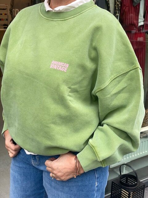 Heerlijke zachte sweater van american vintage in 2 kleuren. De sweater is oversized. Model draagt een small.