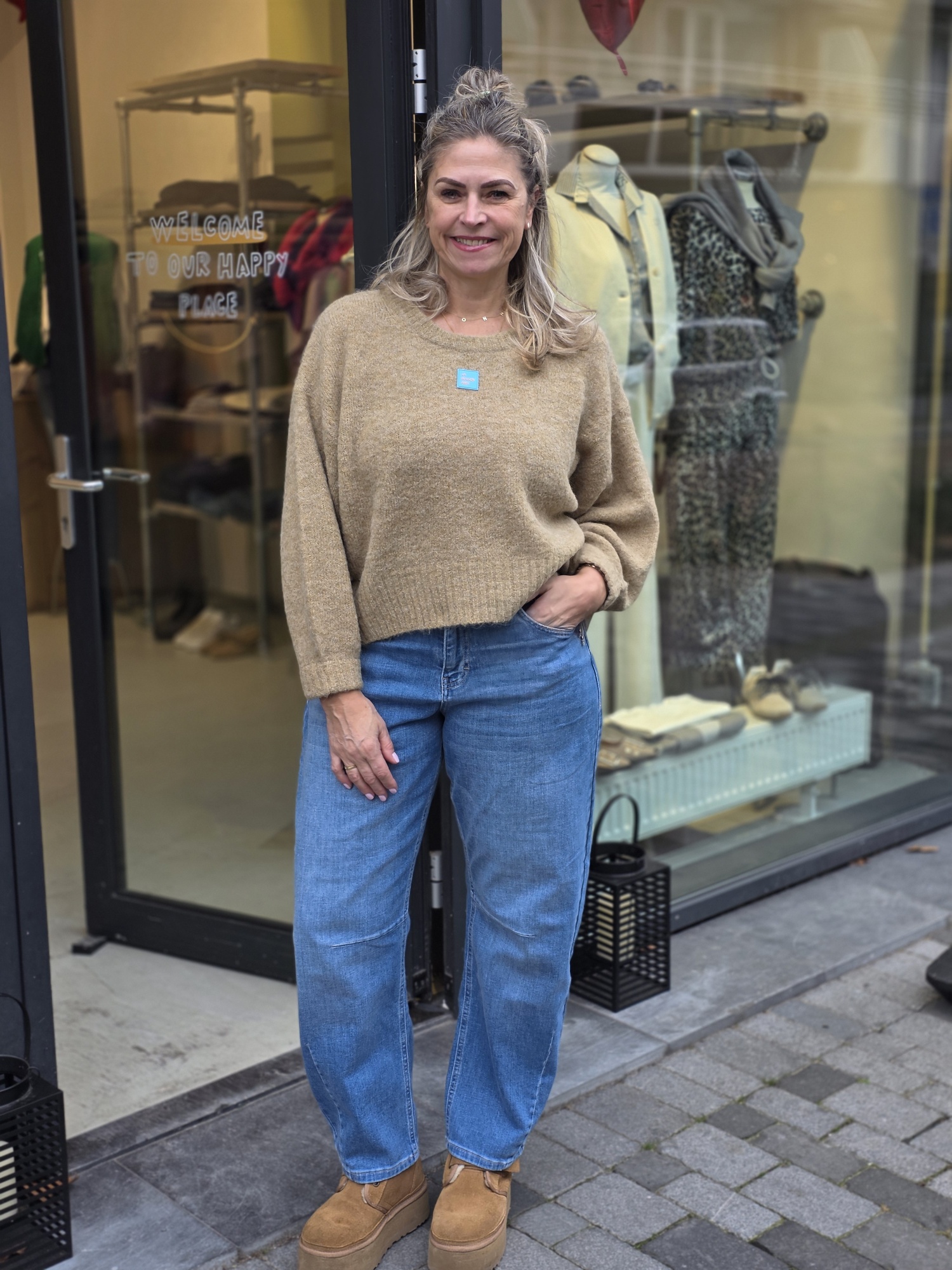 De East-trui met lange mouwen voor dames is gemaakt van het iconische en hoogwaardige breisel van American Vintage, dat bekend staat om zijn comfort en authentieke uitstraling. Het dikke breisel, gemaakt van een mix van wol en alpaca, biedt een omhullende warmte en blijft tegelijkertijd elastisch, luchtig en ademend. De Italiaanse garens geven het materiaal een zachte en fluffy feel, aangenaam om dagelijks te dragen. Deze trui heeft een zeer vrouwelijke boothals en kan gemakkelijk over een T-shirt worden gedragen en gecombineerd met een jeans voor een casual en elegante look.