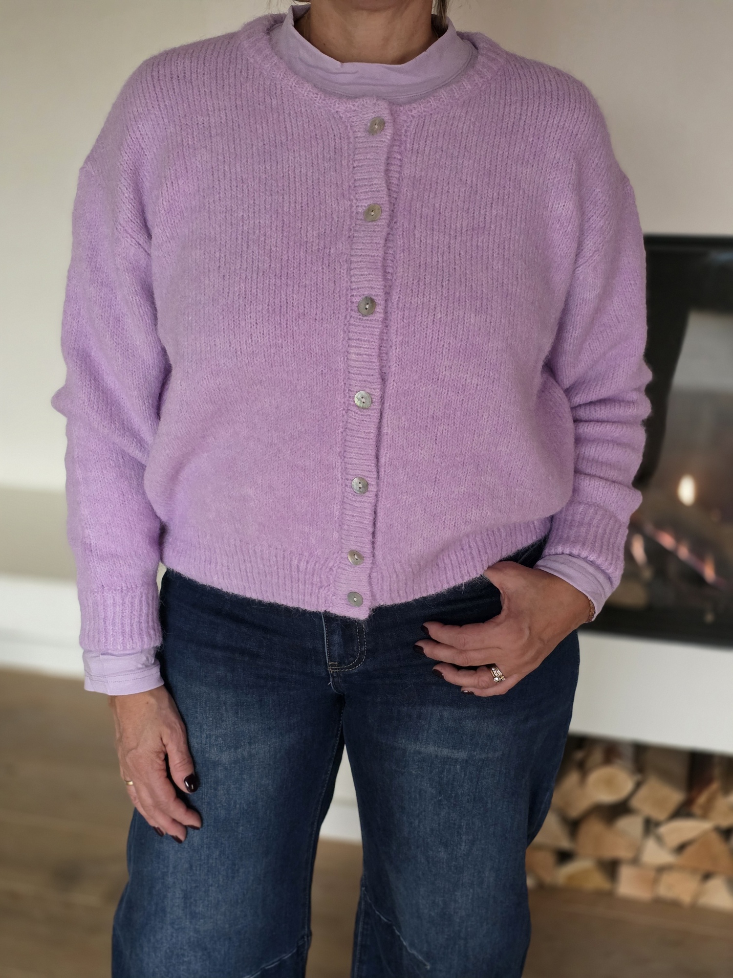Leuke zachte vestjes in 3 kleuren. Lila, peach en grijs. Vestjes zijn in 1 maat.