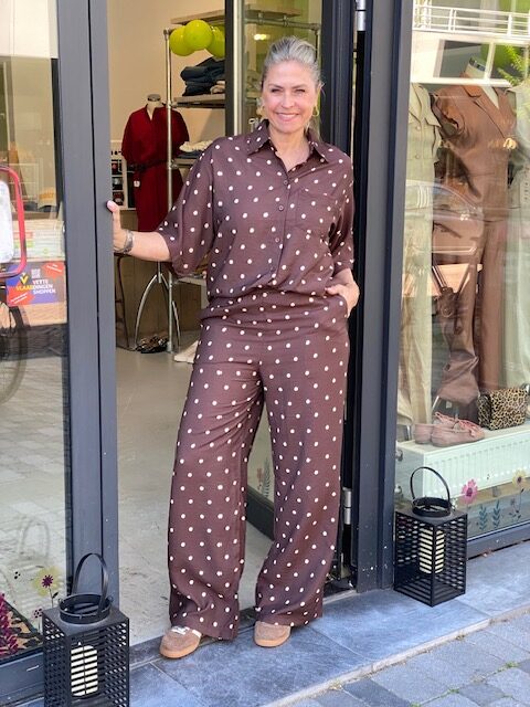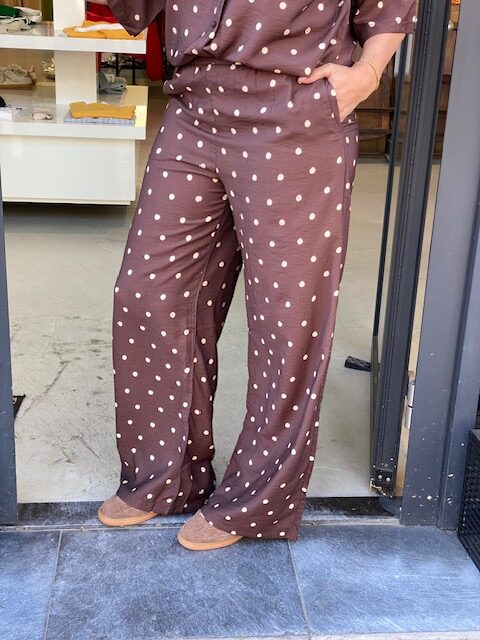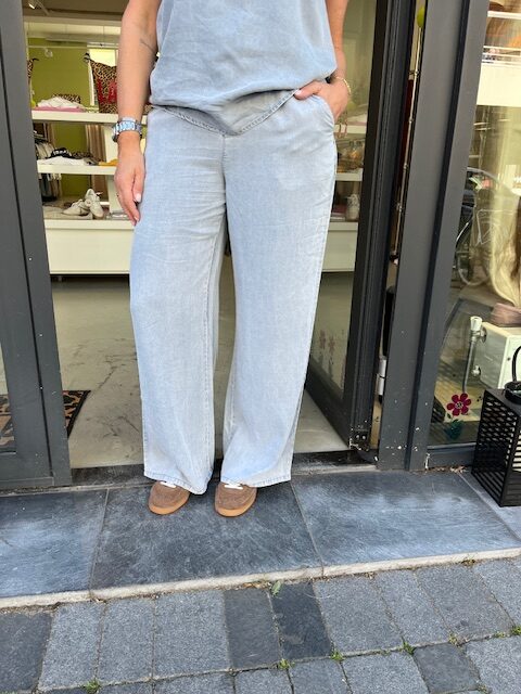 LineaFV zijn wijd-passende broeken gemaakt van scherpe linnenblendstof in een fijne structuur. Omdat ze midden in de taille zijn, hebben we ze gevormd zodat ze op je heupen rusten en ruim zijn rond je taille, heupen en dijen. De gemakkelijk toegankelijke schuine voorzakken, 1 opgelapte achterzak, elastische tailleband en trekkoord onderstrepen de moeiteloze uitstraling van Linea. Model draagt een medium