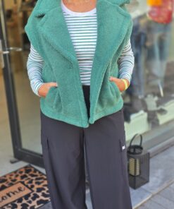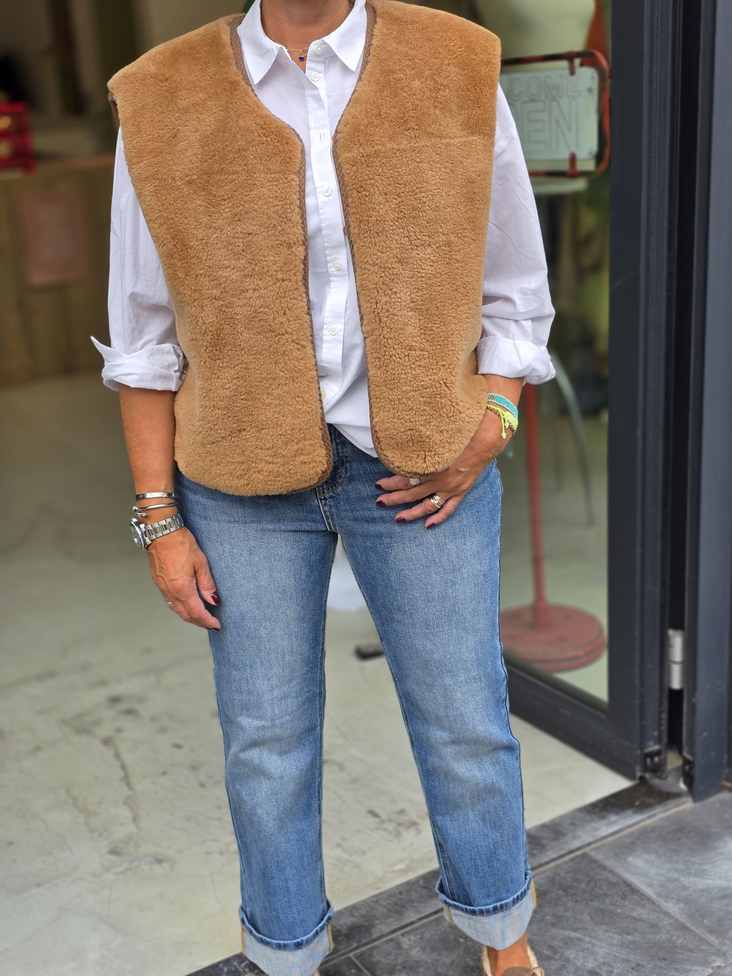 Stoer gilet met zacht bont materiaal. Model draagt maat 38