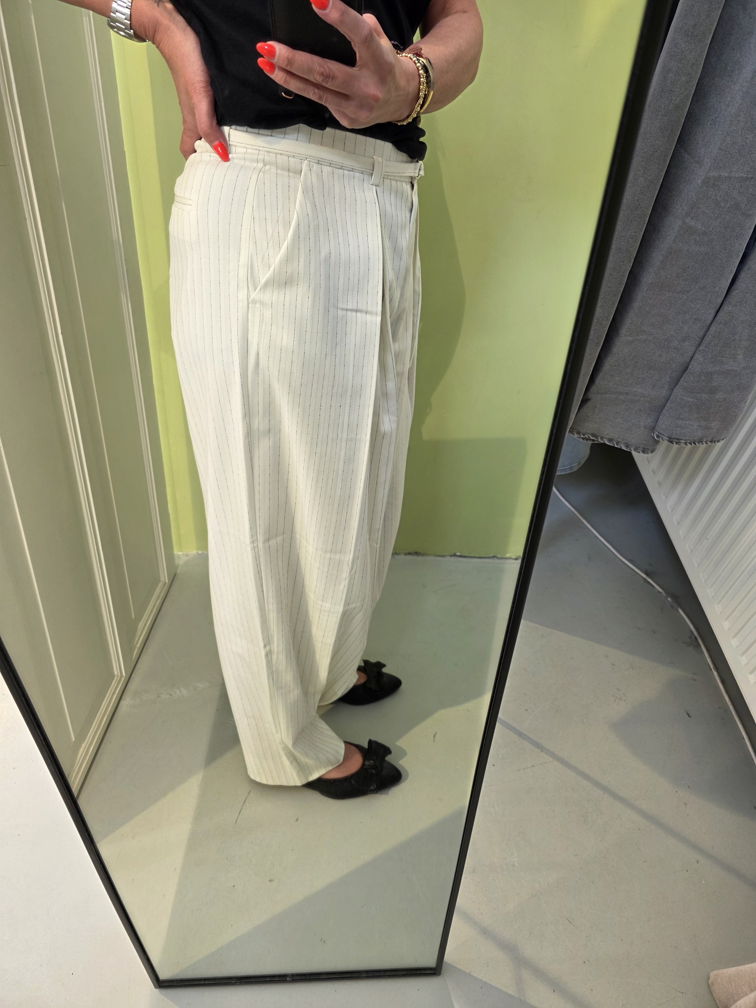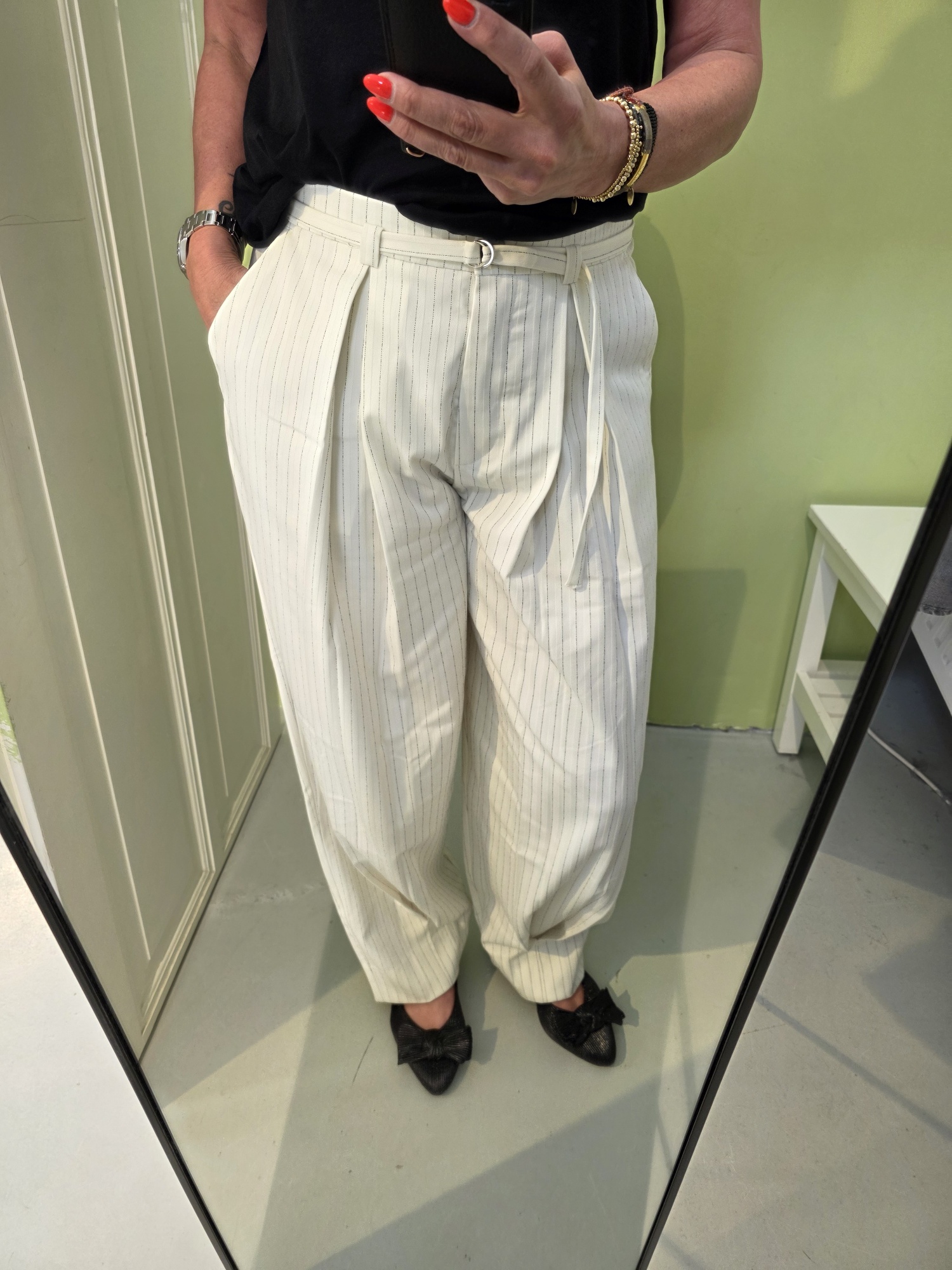 - High‑waist met elastische tailleband achter