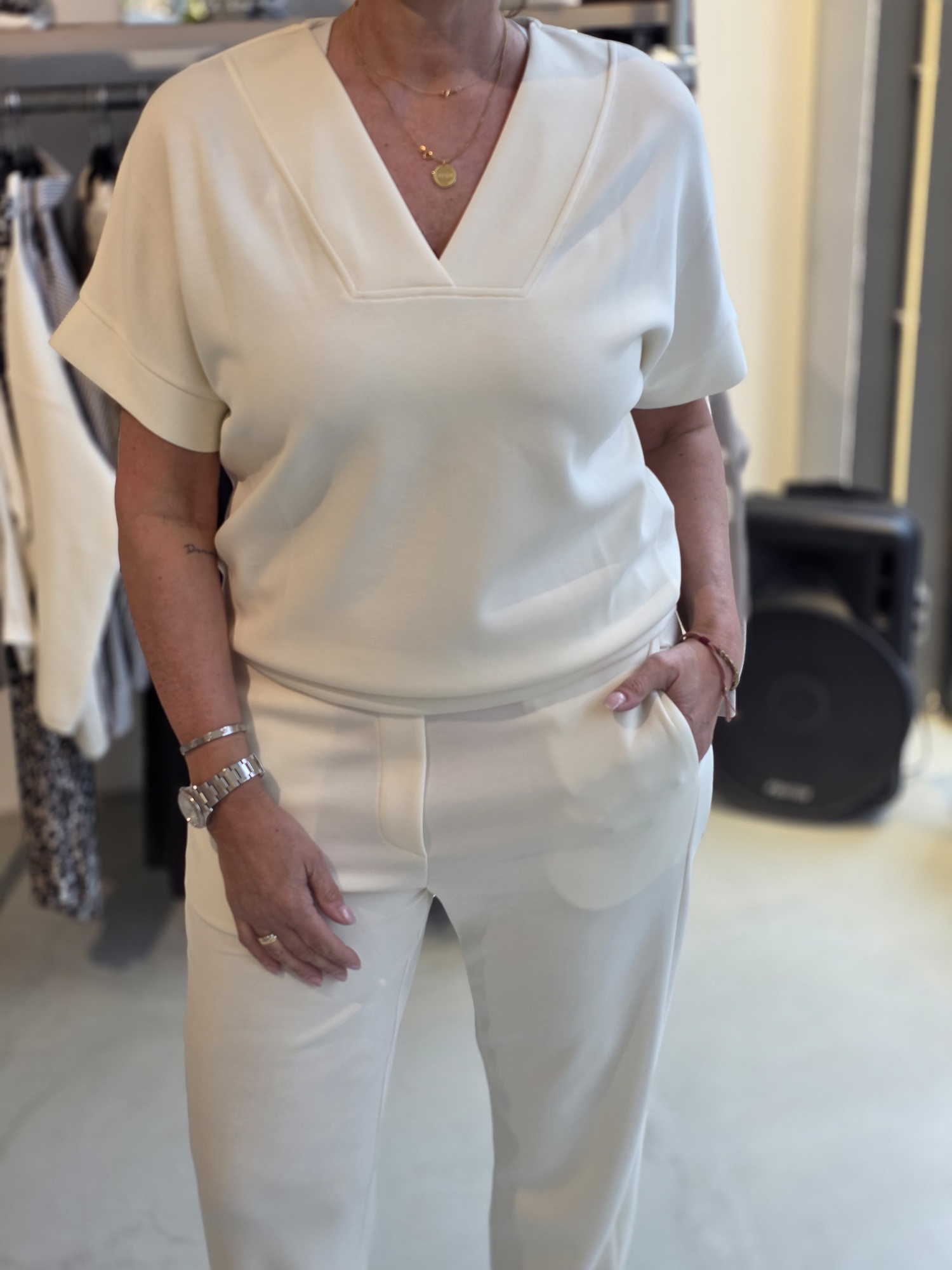 Het ontwerp is clean en tegelijkertijd verfijnd: een ronde hals, korte wijduitlopende mouwen en een licht aangesloten pasvorm die mooi om het lichaam valt. De subtiele plooi aan de zijkant geeft de Kelsey Top een vrouwelijke twist en zorgt voor een flatterende valling. De opgerolde mouwboorden maken de top modern en minimalistisch chic.
