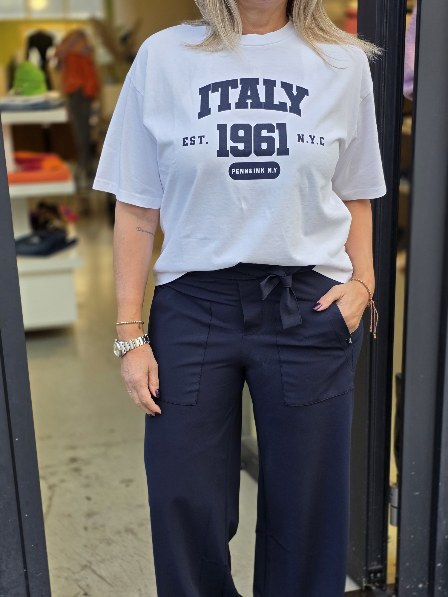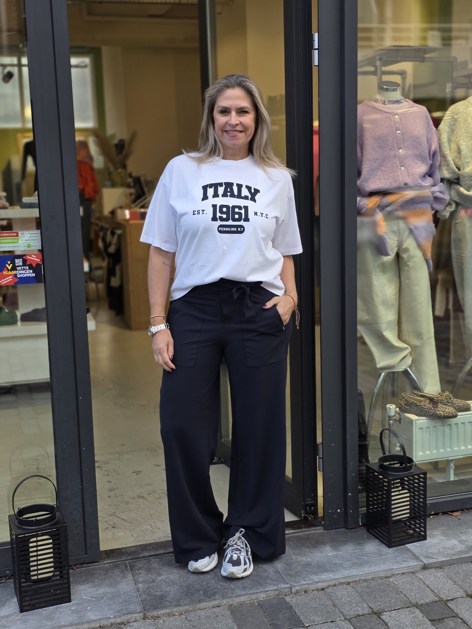 Leuk t-shirt met de tekst Italy. Model draagt maat m.