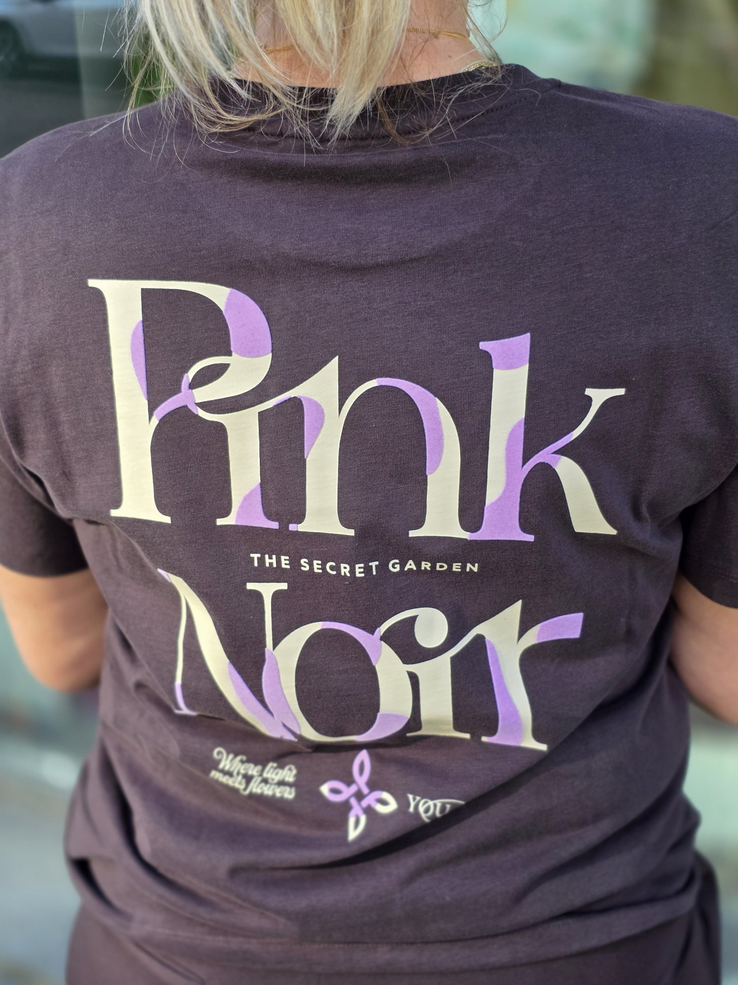 Op de achterkant staat een groot logo print. Model draagt maat m.