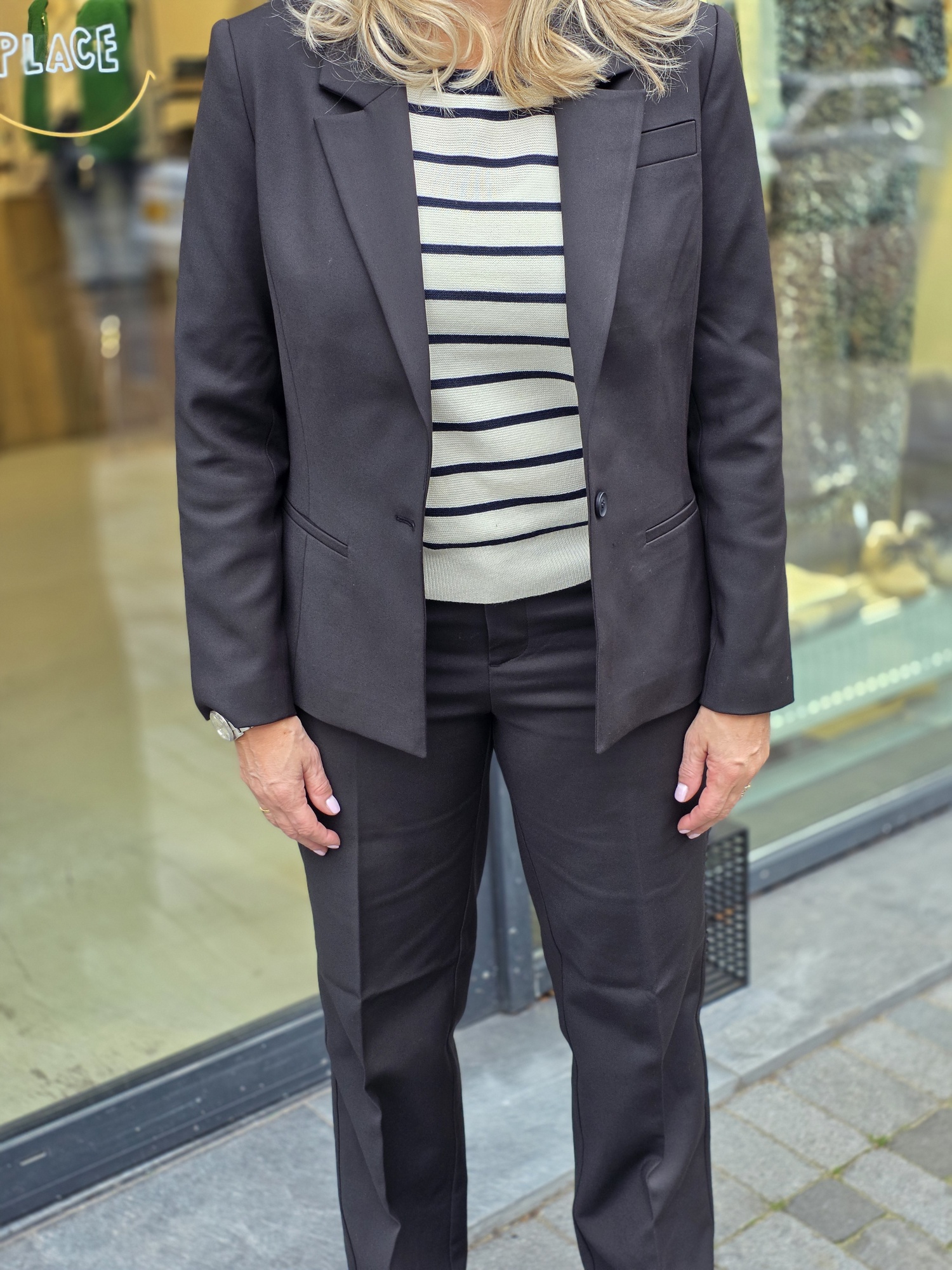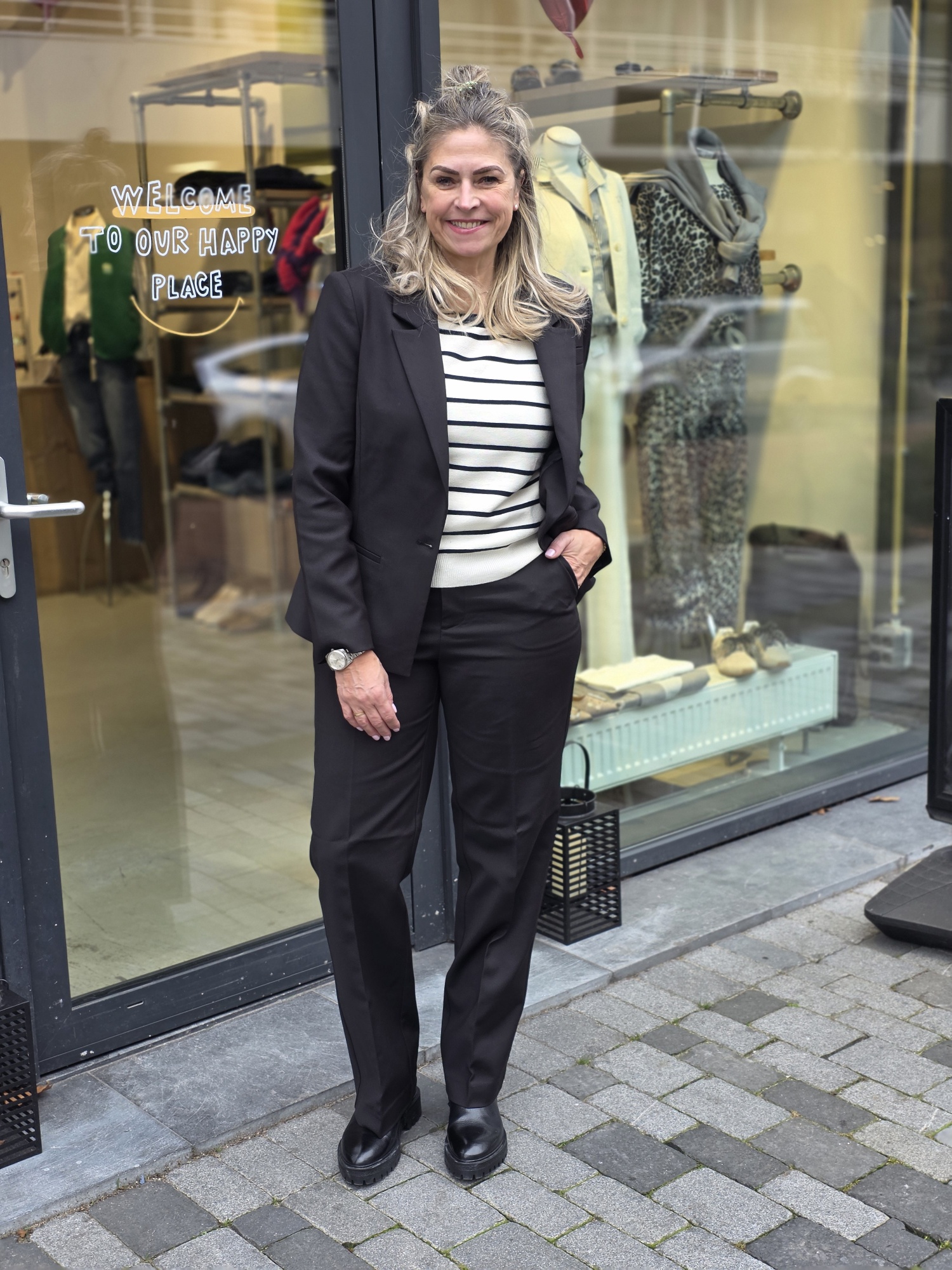 Blazer met getailleerde pasvorm, scherpe revers en een knoopsluiting. Voorzien van steekzakken, borstzak en een geheel gevoerde binnenkant. Model draagt maat 40. Blazer valt iets kleiner.