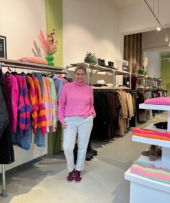 Mooie zachte broek in het velvet materiaal, wat korter model. Model draagt maat 38.