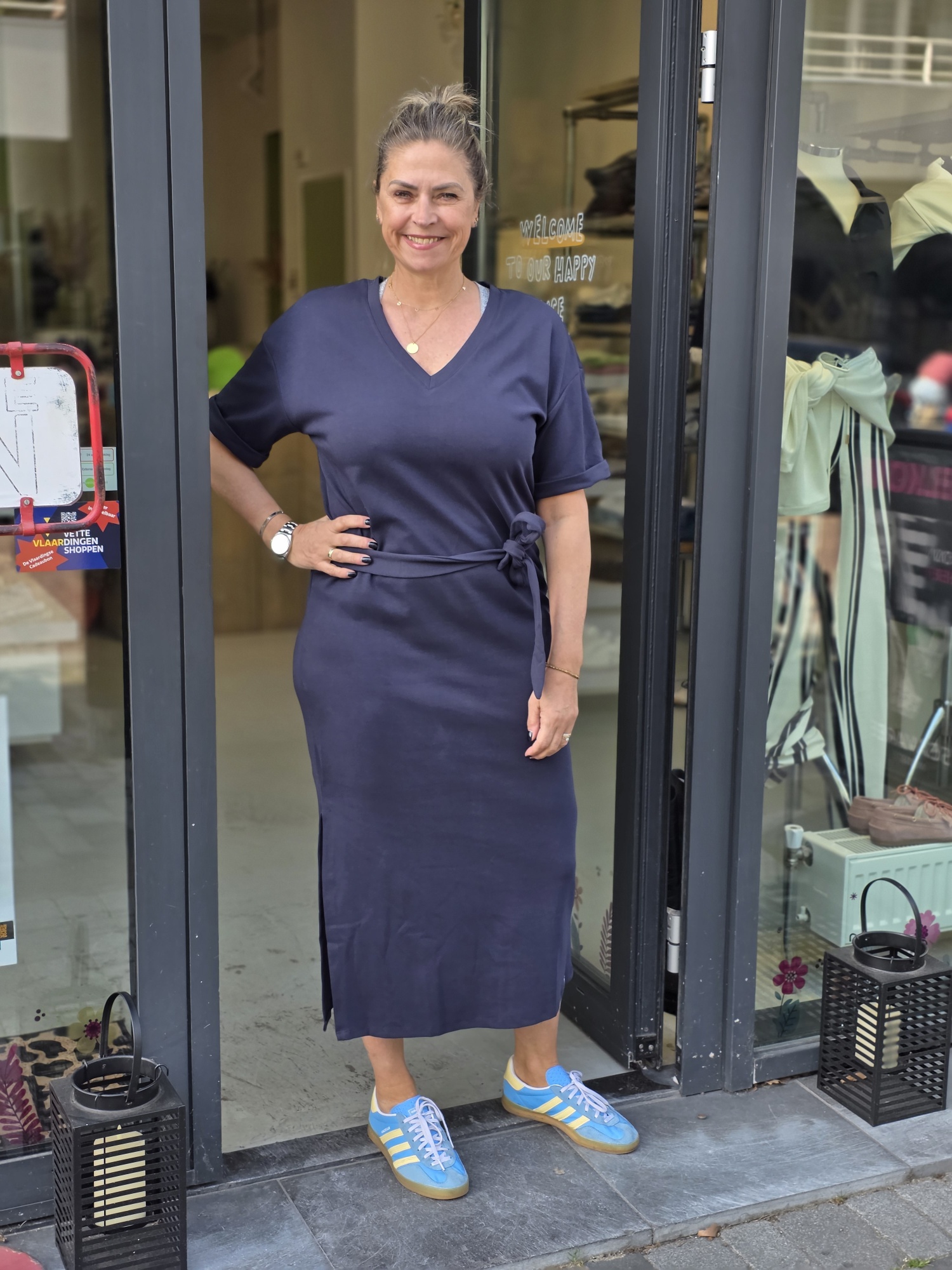 Leuke jurk met ruffles aan de bovenkant, en zakken. Model draagt maat 38