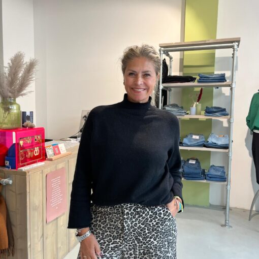 Mooi truitje met een turtle nek. Model draagt maat s/m
