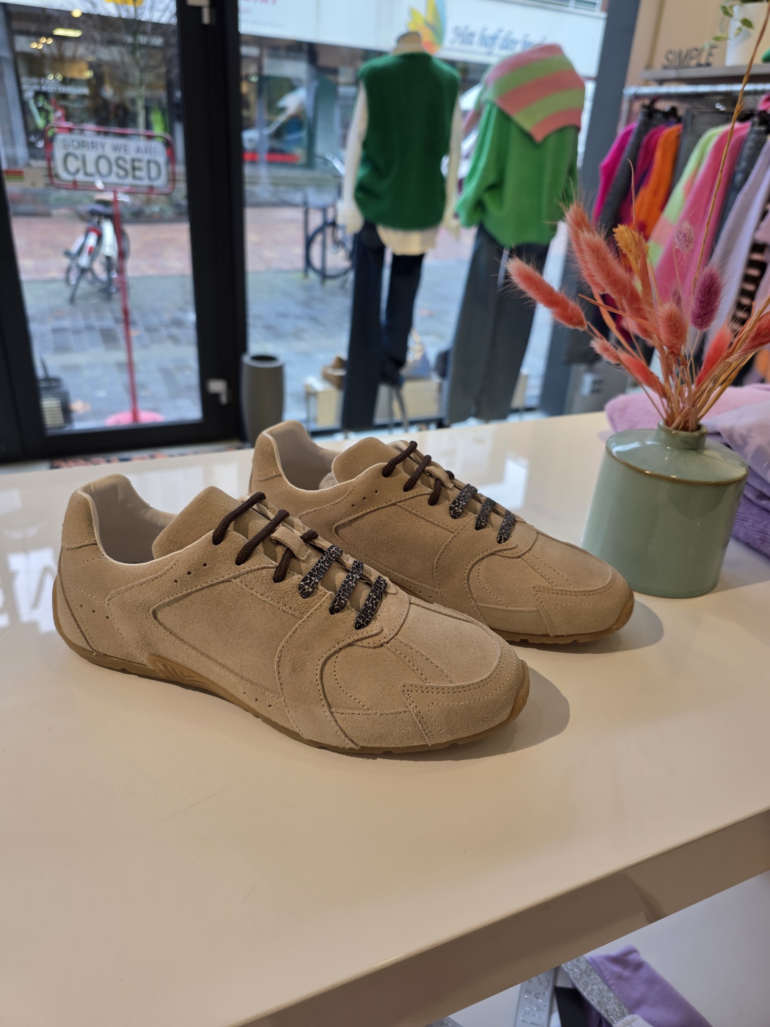 - De sneaker is er in 2 kleuren, bruin en zand.