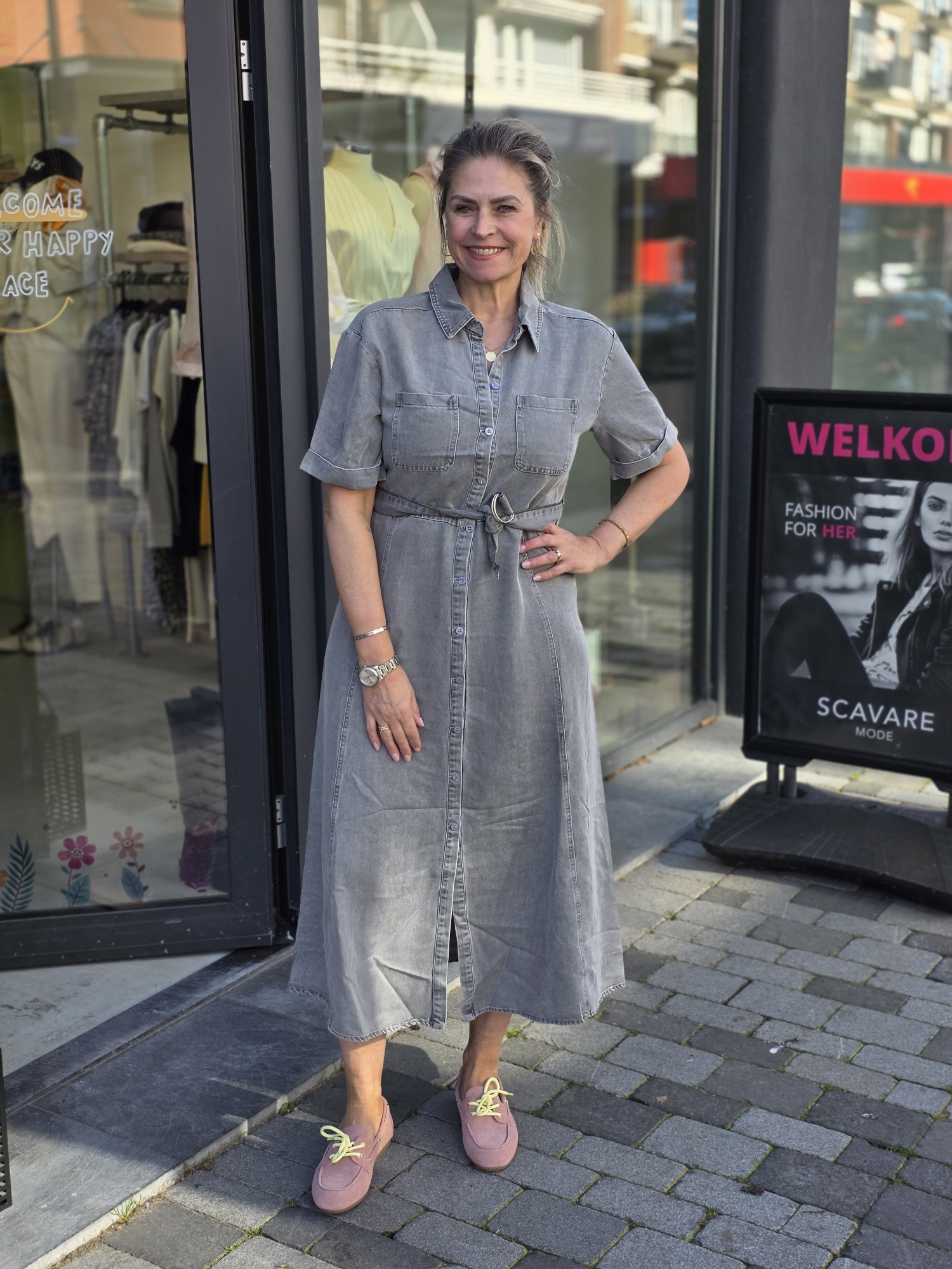 - Het model is 171 cm en draagt maat S