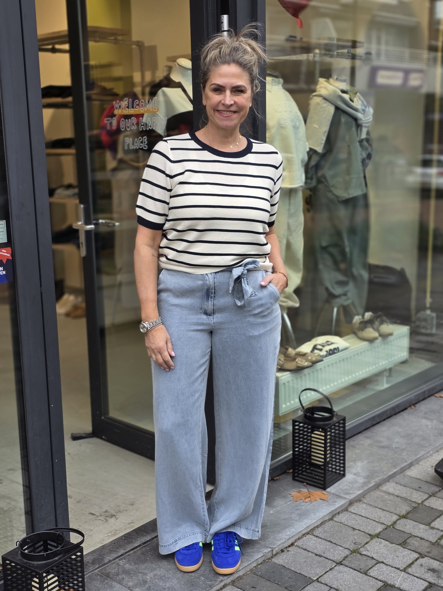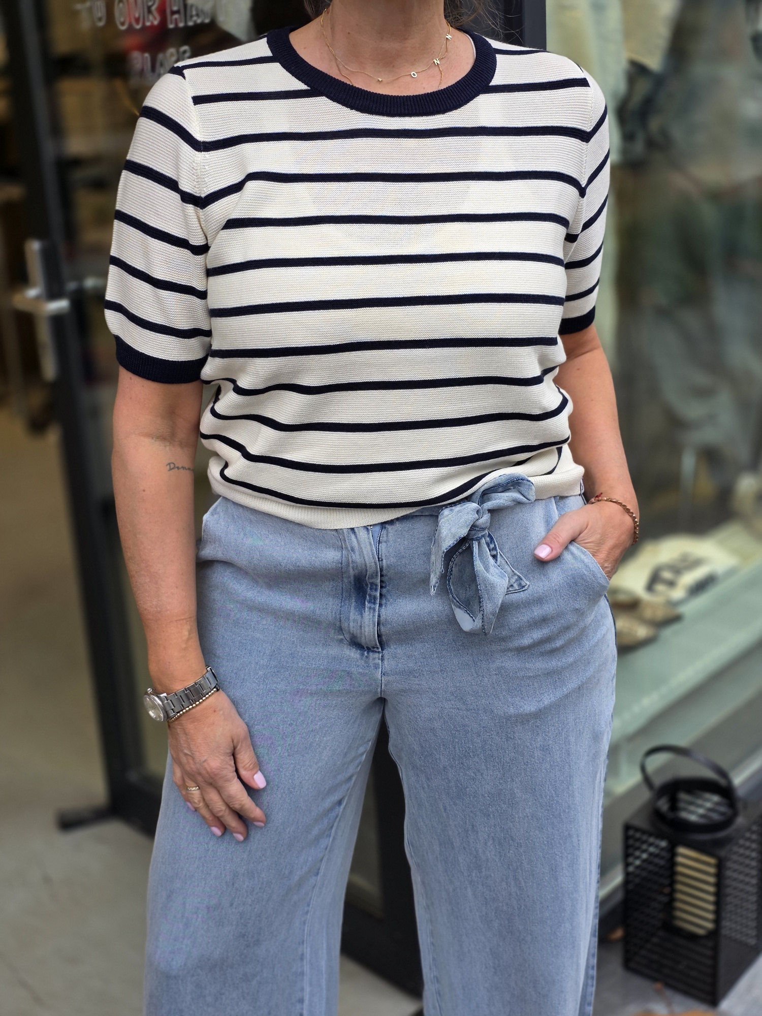Een frisse, veelzijdige zomerknit met een tijdloos strependessin. Gemaakt van fijngebreide, yarn-dyed kwaliteit voor langdurige kleurintensiteit. De regular fit zorgt voor een clean en comfortabel silhouet, terwijl de ronde hals een klassieke, vrouwelijke touch toevoegt. Een ideaal item voor zonnige dagen, makkelijk te combineren met denim, shorts of elegante rokken.